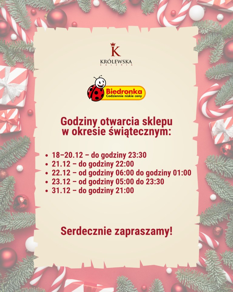 Świąteczne godziny otwarcia sklepu Biedronka